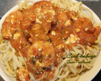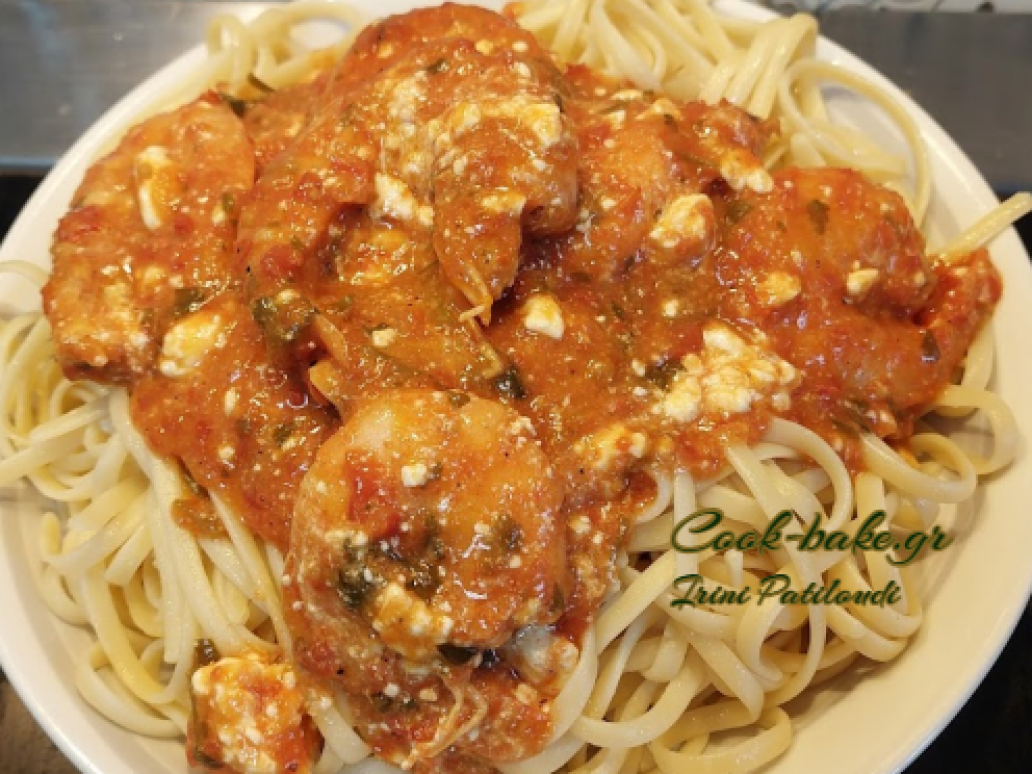 Γαριδομακαρονάδα σπέσιαλ με ντομάτα και φέτα