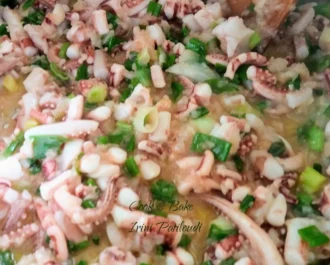 Ψιλοκόβουμε και τα πλοκάμια και τα προσθέτουμε και αυτά στο λάδι και τα γυρνάμε λίγο μέσα.