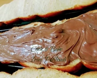 ‘Αφού το κόψουμε στην μέση, το σιροπιάζουμε και το γεμίζουμε με την πραλίνα αρεσκείας μας.