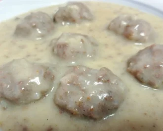 Αφού έχουμε αφαιρέσει όλον τον αφρό προσθέτουμε λίγο αλάτι, λίγο πιπέρι και λίγο λάδι και αφήνουμε να βράσουν για 50 λεπτά. Δοκιμάζουμε στο τέλος μισό γιουβαρλάκι να δούμε αν είναι μαλακό αλλιώς βράζουμε λίγο ακόμα. Προσθέτουμε το αλεύρι που διαλύσαμε στο νερό και σουρώσαμε να μην έχει σβόλους και βράζουμε για 2 λεπτά να χυλώσει το ζουμί.