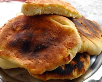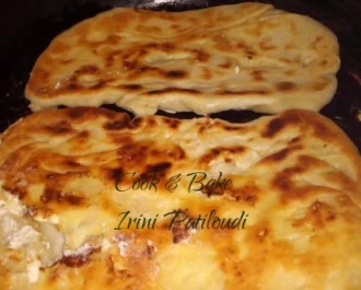 Πίτα στο τηγάνι γεμιστή με τυρί και αυγό.
