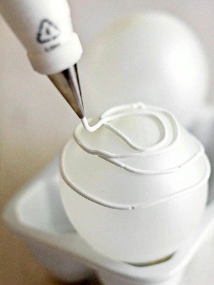 Βάζουμε σε σακούλες κορνέ μιάς χρήσης με λεπτή μύτη και γράφουμε ή κάνουμε σχέδια επάνω σε μπισκότα.