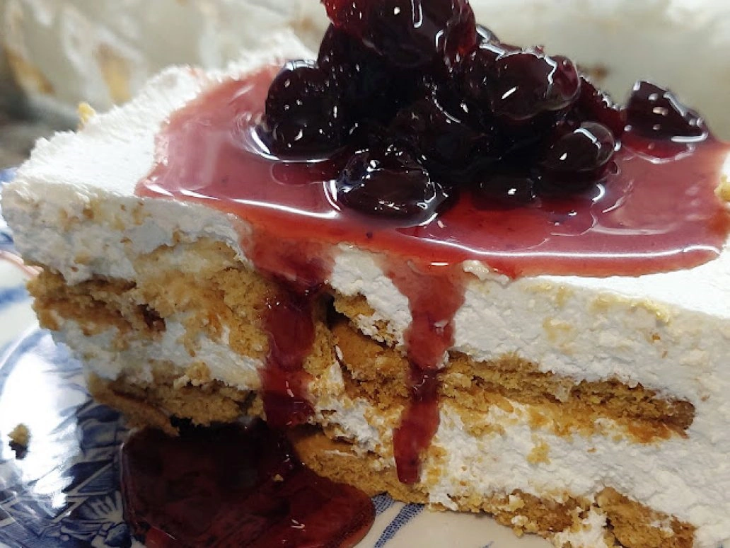 Υπέροχο γλυκό ψυγείου με μπισκότα πτι μπερ και γλυκό κουταλιού από πάνω της αρεσκείας μας.