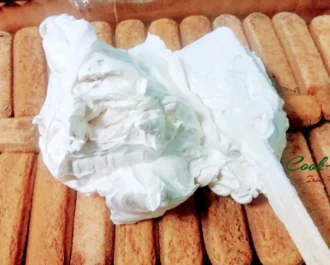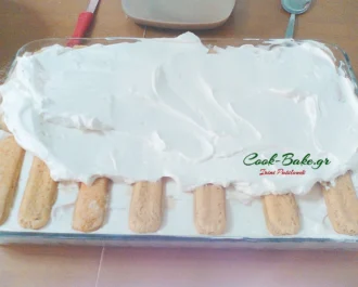Βουτάμε και τα υπόλοιπα σαβαγιαρ και στρώνουμε πάνω από την κρέμα.
