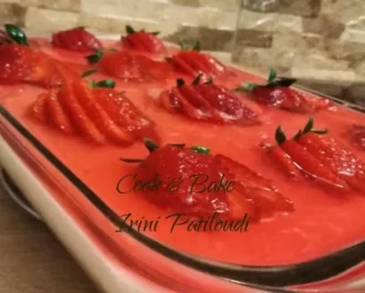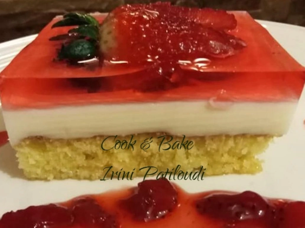 Γλυκό ψυγείου φράουλα με άρωμα Ανατολής, σιροπιασμένη βάση και ζελέ φράουλα της φίλης Κωνσταντινιά ΠΚ.