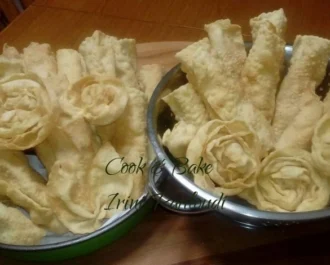 Κάνουμε και λωρίδες που τις τυλίγουμε και τις τηγανίζουμε και αυτές.