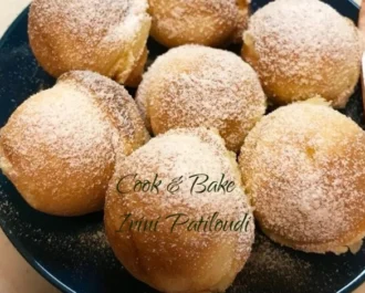 Μόλις κάνει κρούστα , το γυρίζουμε εντελώς να σχηματιστεί η μπάλα και να ψηθεί . Μεταφέρουμε τα σφαιρικά ντόνατς σε πιάτο και πασπαλίζουμε με άχνη ζάχαρη.