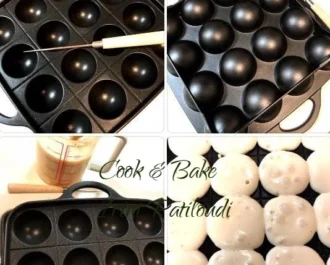 Ζεστάνουμε σε μέτρια προς δυνατή φωτιά το ανάλογο σκεύος που είναι σαν τηγάνι για γκάζι και το βουτυρώνουμε με ένα πινέλο . Ρίχνουμε τον χυλό και μόλις κάνει φούσκες στην επιφάνεια , γυρίζουμε το κάθε μπαλάκι με την ανάλογη βελόνα 90 μοίρες . Aν δεν έχουμε το σκεύος αυτό μπορούμε να τα κάνουμε pancakes σε τηγάνι απλό.