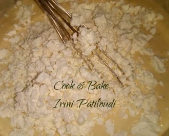 Μέχρι να ετοιμάσουμε την ζύμη βάζουμε το ταψί (30 cm) στον φούρνο που έχει ζεσταθεί να κάψει…200 βαθμούς. Για την ζύμη ανακατεύουμε όλα τα υλικά και στο τέλος προσθέτουμε την φέτα τριμμένη σε χοντρά κομμάτια.
