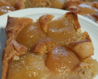 Κέικ ζουμερό με αχλάδια κομπόστα