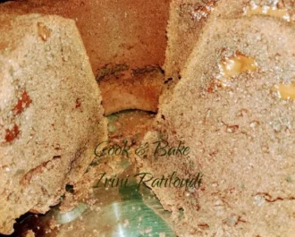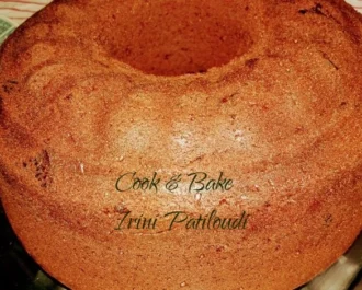 Αδειάζουμε την ζύμη σε βουτυρωμένη φόρμα του κέικ και ψήνουμε σε αέρα στους 170 βαθμούς για 55 λεπτά. Ο φούρνος να είναι ζεστός.
