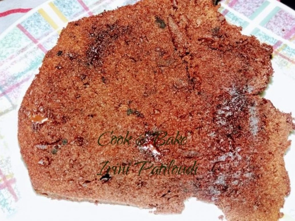 Κέικ κακάο με κομμάτια σοκολάτας.