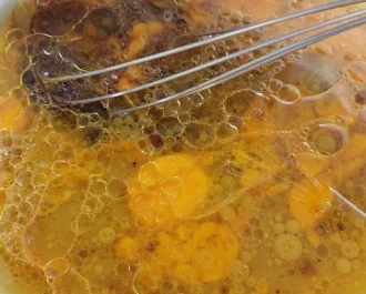 Χτυπάμε όλα τα υλικά μας μαζί στο χέρι με σύρμα ή με μίξερ χεριού εκτός από τα καρότα και το αλεύρι και μπείκιν.
