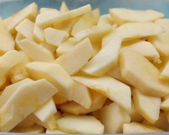 Πλένουμε, καθαρίζουμε, κόβουμε τα μήλα μας. Τρίβουμε την φλούδα του λεμονιού και το κρατάμε για την ζύμη. Περιχύνουμε τα μήλα με τον χυμό και ανακατεύουμε στα μήλα να μην μαυρίσουν.