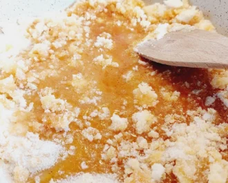 Ανακατεύουμε συνέχεια μην μας κολλήσει, μόλις αρχίσει να λιώνει χαμηλώνουμε το μάτι.
