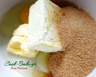 Χτυπάμε στο μίξερ πολύ καλά να αφρατέψει το βούτυρο, αυγά, ζάχαρη.