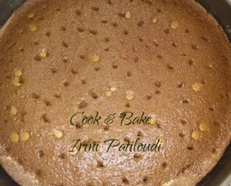 Μόλις ψηθεί το τρυπάμε με χοντρό καλαμάκι πολλές τρύπες μεγάλες για να απορροφήσει το σιρόπι που είναι λίγο πηχτό.
