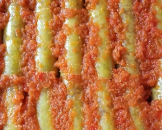 Γεμίζουμε τα κανελόνια με τον κιμά και τα στρώνουμε σε σειρα στο ταψί μας.