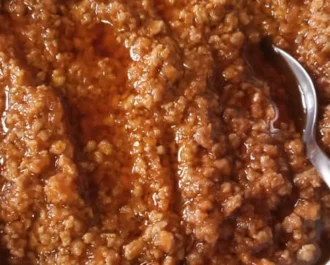 Ετοιμάζουμε και τον κιμά με τα υλικά του. Τσιγαρίζουμε το κρεμμύδι, τον κιμά, προσθέτουμε τα υλικά του και βράζουμε για 15 λεπτά.