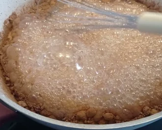 Ανακατεύουμε συνέχεια σε πιο χαμηλή φωτιά μέχρι να εξατμιστεί όλο τοι σιρόπι.