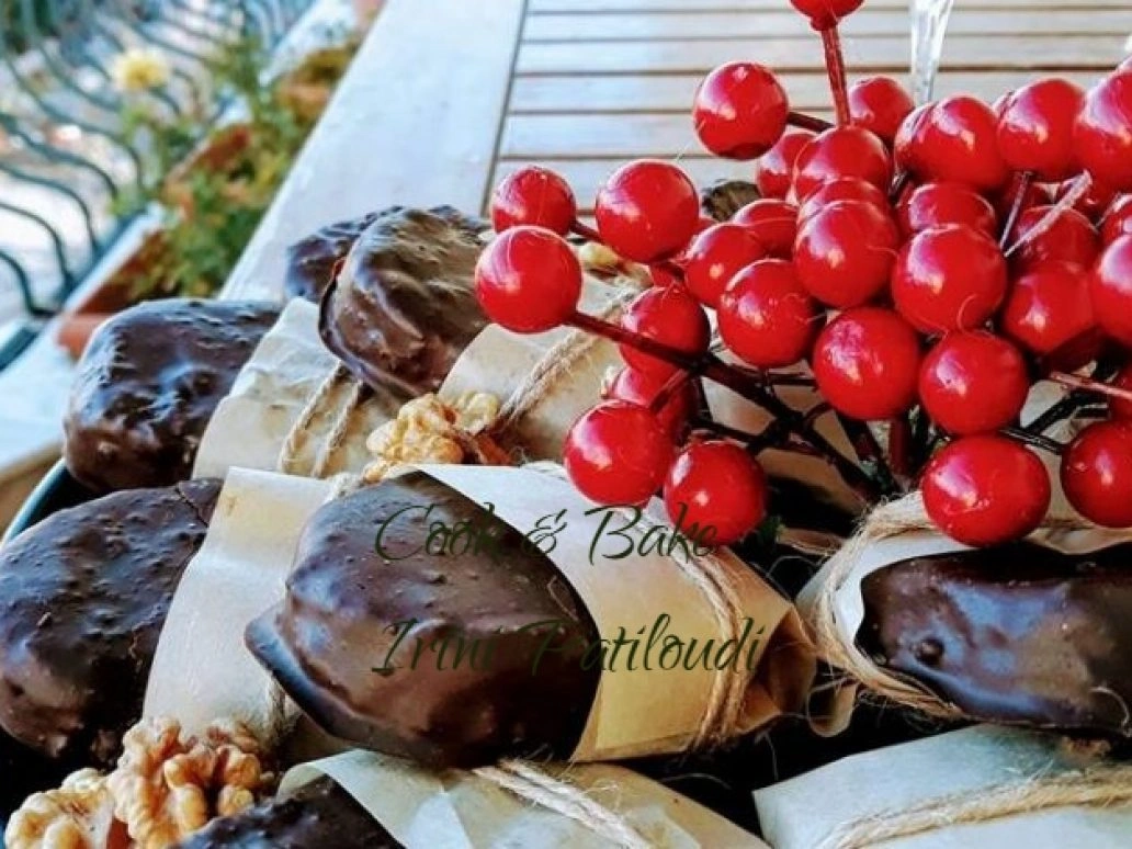 Λιώνουμε την κουβερτούρα και βυθίζουμε τις φέτες μέσα σε αυτήν. Τοποθετούμε σε λαδόκολλα να στεγνώσουν.