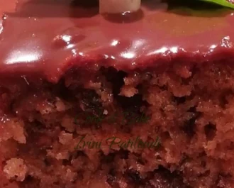 Βράζουμε το σιρόπι μας και αφού έχει κρυώσει το γλυκό μας το περιχύνουμε με το ζεστό σιρόπι. Αφήνουμε να κρυώσει.