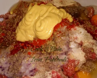 Ζυμώνουμε πολύ καλά τα υλικά μας με τον κιμά για αρκετή ώρα.