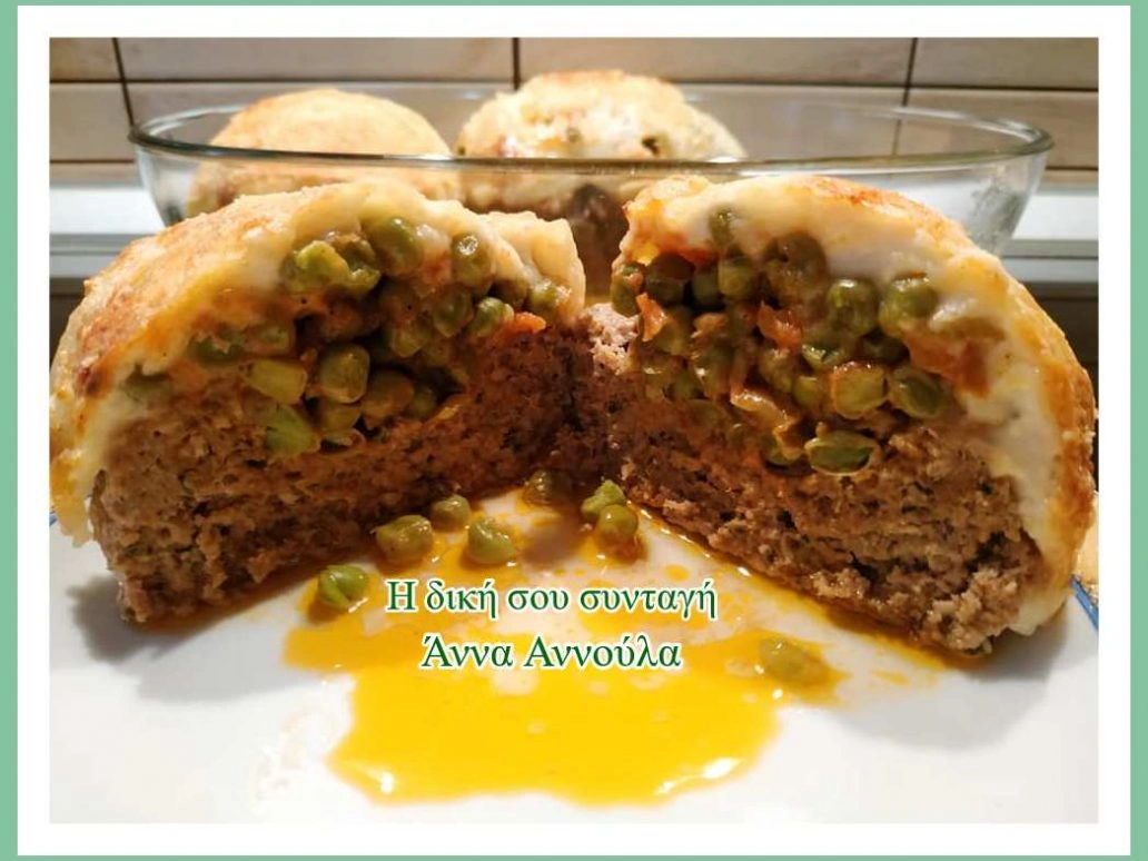 Ζυμώνουμε τον κιμά, πλάθουμε σε μεγάλα μπαλάκια και τα τοποθετούμε σε λαδωμένο ταψί. Κάνουμε ένα βαθούλωμα για την γέμιση.