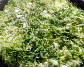 Μία πίτα με φύλλα έτοιμα λαβάς (τα προψημένα που τα βρέχουμε) με κολοκυθάκια και φέτα…