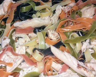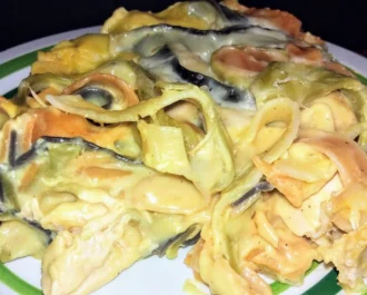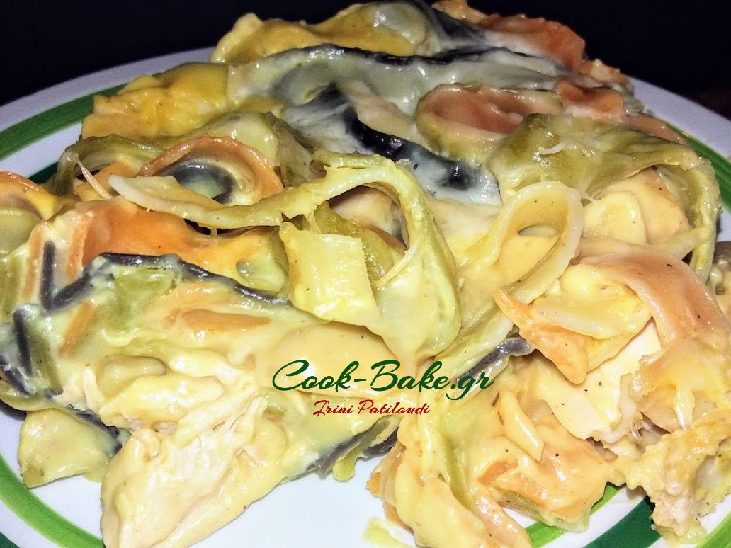 Κοτόπουλο με λαζάνια τρικολόρε και κρέμα γάλακτος