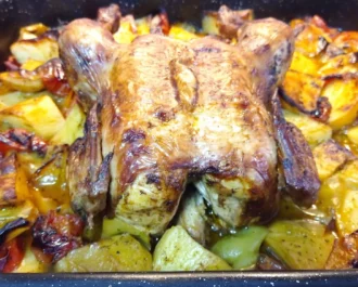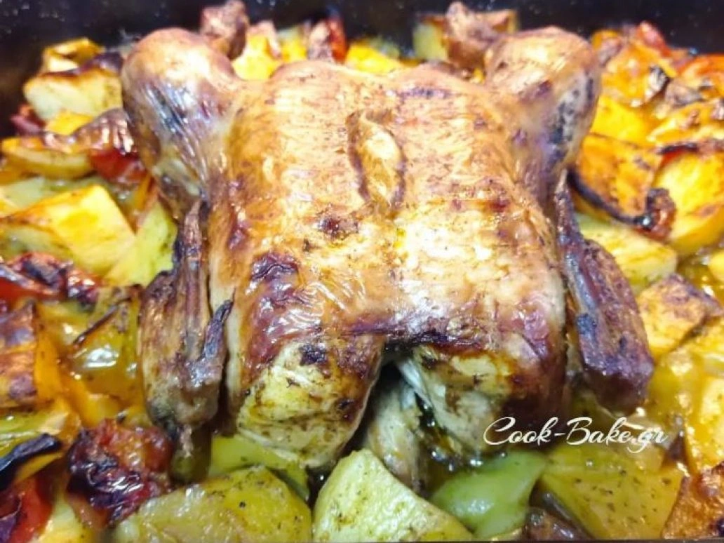 Κοτόπουλο με πατάτες και διάφορα λαχανικά