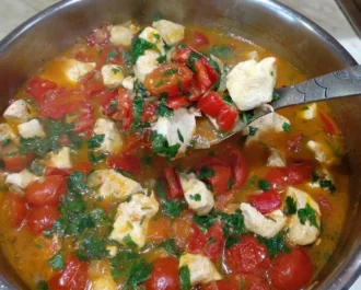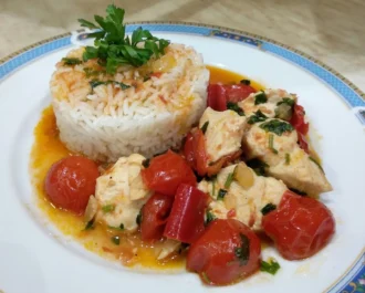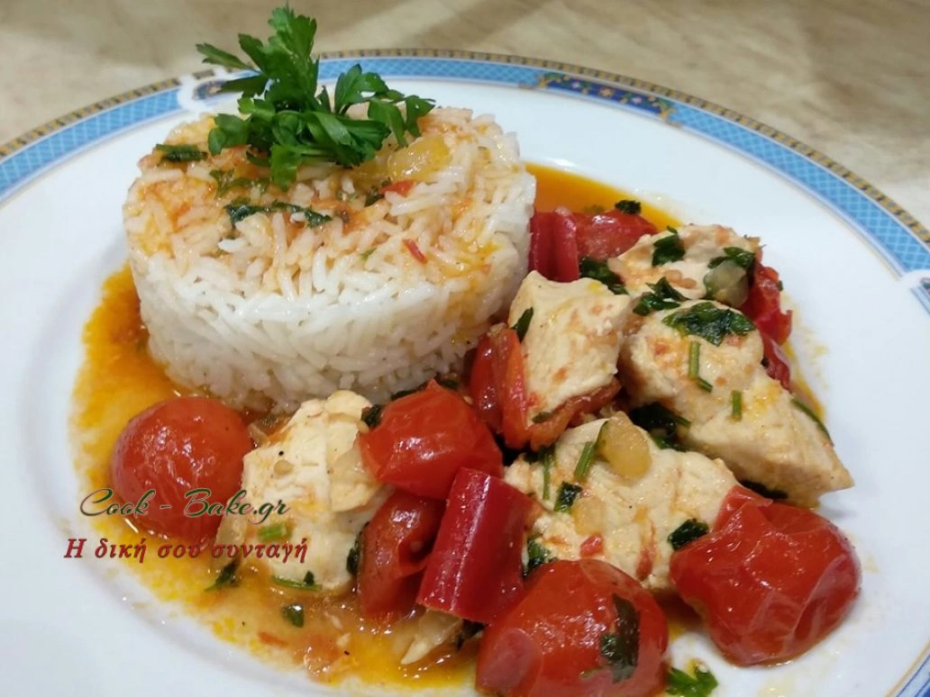 Κοτόπουλο με πιπεριές, ντοματίνια και ρύζι μπασμάτι