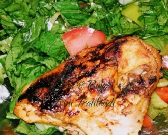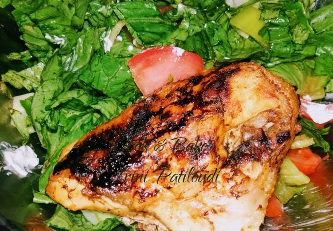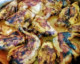Απλό ψητό κοτόπουλο σε μερίδες κομμένο με μέλι και τραγανή πέτσα.