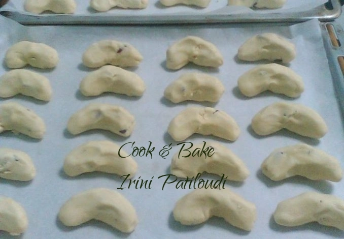 Πλάθουμε σε μακρόστενο φεγγαράκι ή στρόγγυλο σχήμα. Αραδιάζουμε σε ταψί με χαρτί ψησίματος.