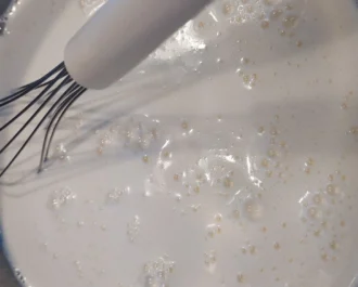 Ανακατεύουμε καλά μέσα και το κορν φλαουρ.