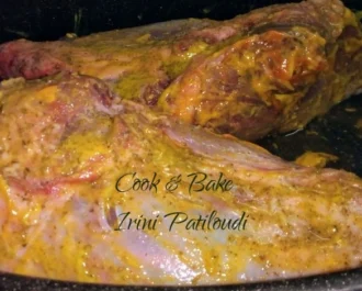 ψήνουμε για 1 ώρα και 30 λεπτά στους 200 βαθμούς και ένα τέταρτο ξεσκέπαστο να πάρουν χρώμα.