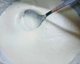 Για την ψευτομπεσαμέλ μας βάζουμε όλα τα υλικά να βράσουν (εκτός από τα αυγά και το τυρί). Ανακατεύουμε συνέχεια να μην μας κολλήσει.