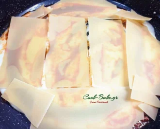 Βάζουμε από πάνω μία στρώση φύλλα λαζάνια.