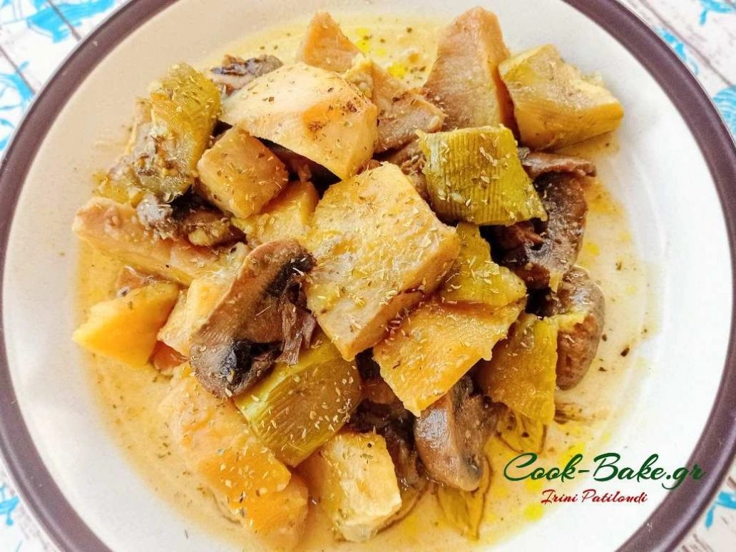 Λαχανικά στην γάστρα, μανιτάρια, κολοκυθάκια, πατάτες