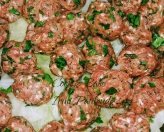 όπως στους λαχανοντολμάδες, σε μπαλάκια. Σκεπάζουμε με λάχανο, πιάτο και βράζουμε.