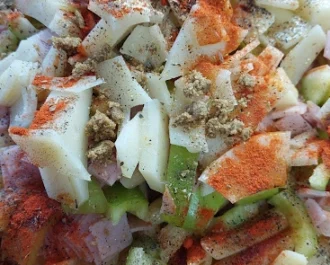 Προσθέτουμε αλάτι , μπαχαρικά, ελαιόλαδο.