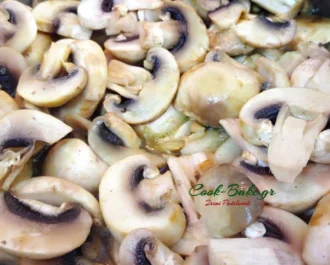 Καθαρίζουμε με βρεγμένο πανί τα μανιτάρια και κόβουμε σε φέτες.