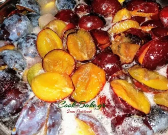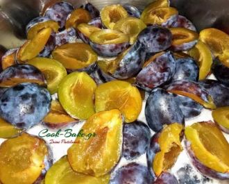 Βγάζουμε τα κουκούτσια και κόβουμε στην μέση τα δαμάσκηνα. Αν δεν τα θέλουμε ολόκληρα τα κόβουμε σε κομματάκια.