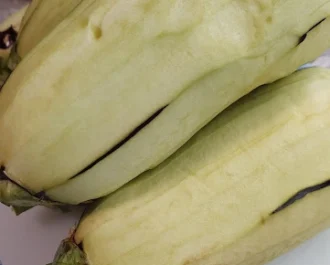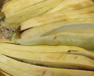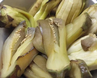 Καθαρίζουμε το εξωτερικό της μελιτζάνας.