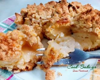 Μηλόπιτα αφράτη σκεπασμένη με κράμπλ