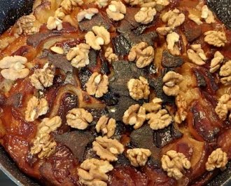 3 κουταλιές μέλι από πάνω και καρύδια για διακόσμηση