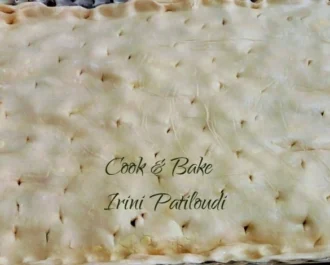 Σκεπάζουμε με το δεύτερο φύλλο σφολιάτας, κάνουμε τρυπούλες με πιρούνι.