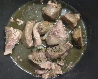 Τσιγαρίζουμε σε ελαιόλαδο το μοσχαράκι σε δυνατή φωτιά μέχρι να πάρει χρώμα.