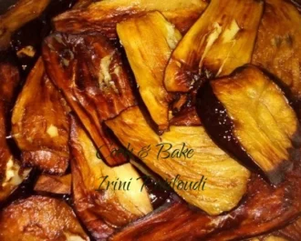 Με μελιτζάνες και πατάτες στο τηγάνι.