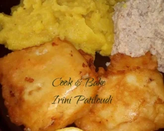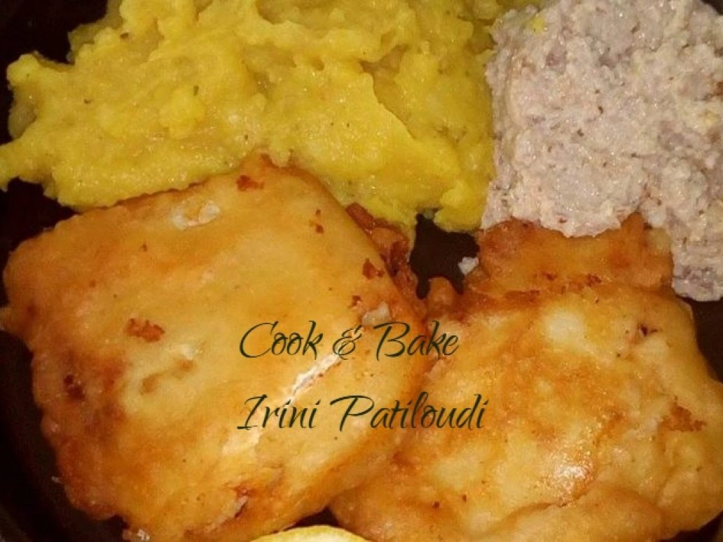 Μπακαλιάρος με σκορδαλιά, τηγανητός με κουρκούτι μπύρας.